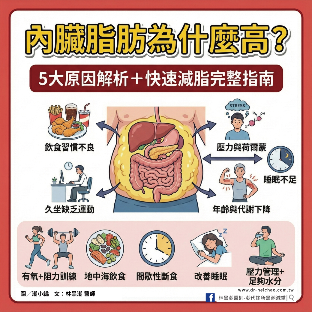 (關鍵字:內臟脂肪、體脂肪、減少脂肪、減重、減脂、胰島素阻抗、代謝症候群、壓力胖、基礎代謝率、間歇性斷食、地中海飲食、有氧運動、重量訓練、皮質醇、林黑潮醫師)